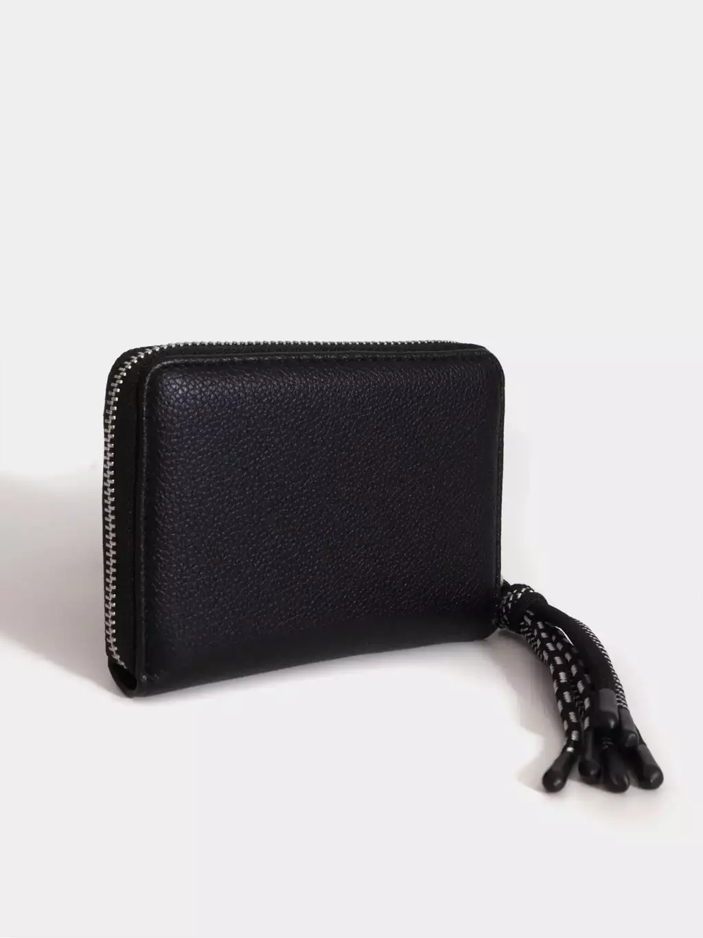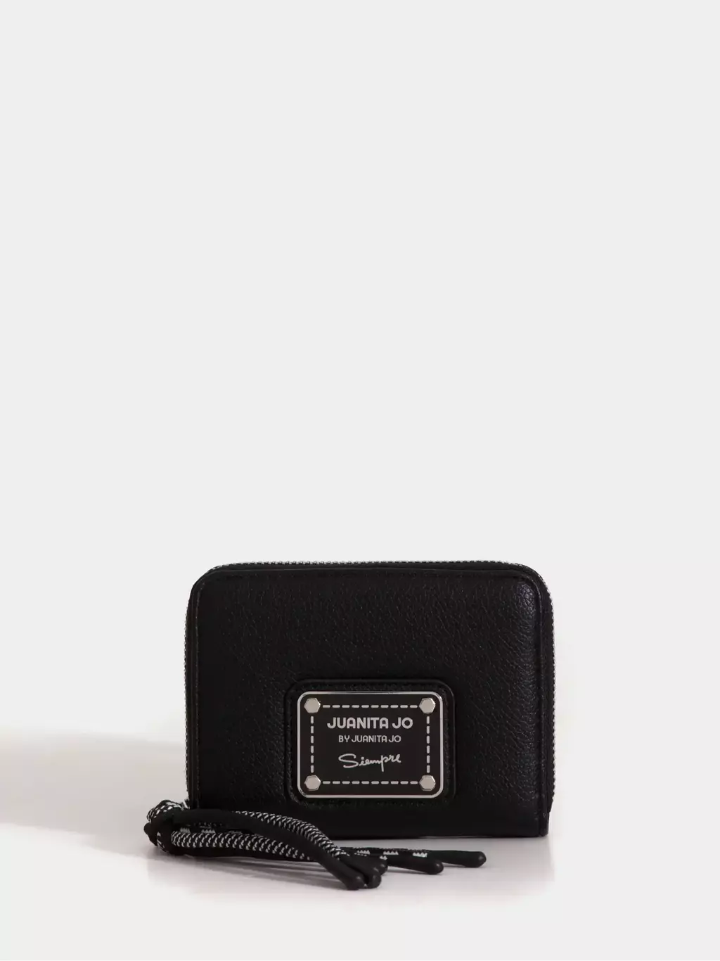 ¡No te puede faltar esta billetera en tu cartera! Cuenta con espacio para 6 tarjetas,compartimento para monedas y espacio para que puedas guardar los billetes doblados. El tiracierre con cordón y la chapa metálica de Juanita Jo le suman un toque cool. Está confeccionado en material alternativo al cuero.