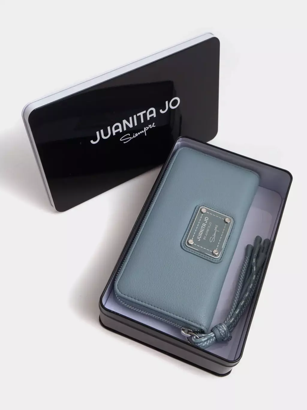Esta billetera es la opción más versátil de todas. Es ese accesorio todoterreno que nunca te abandona. Práctica y funcional, tiene espacio para 6 tarjetas, compartimento para billetes y bolsillo con cierre para monedas. El logo metálico de Juanita Jo suma el detalle elegante que la hace única.