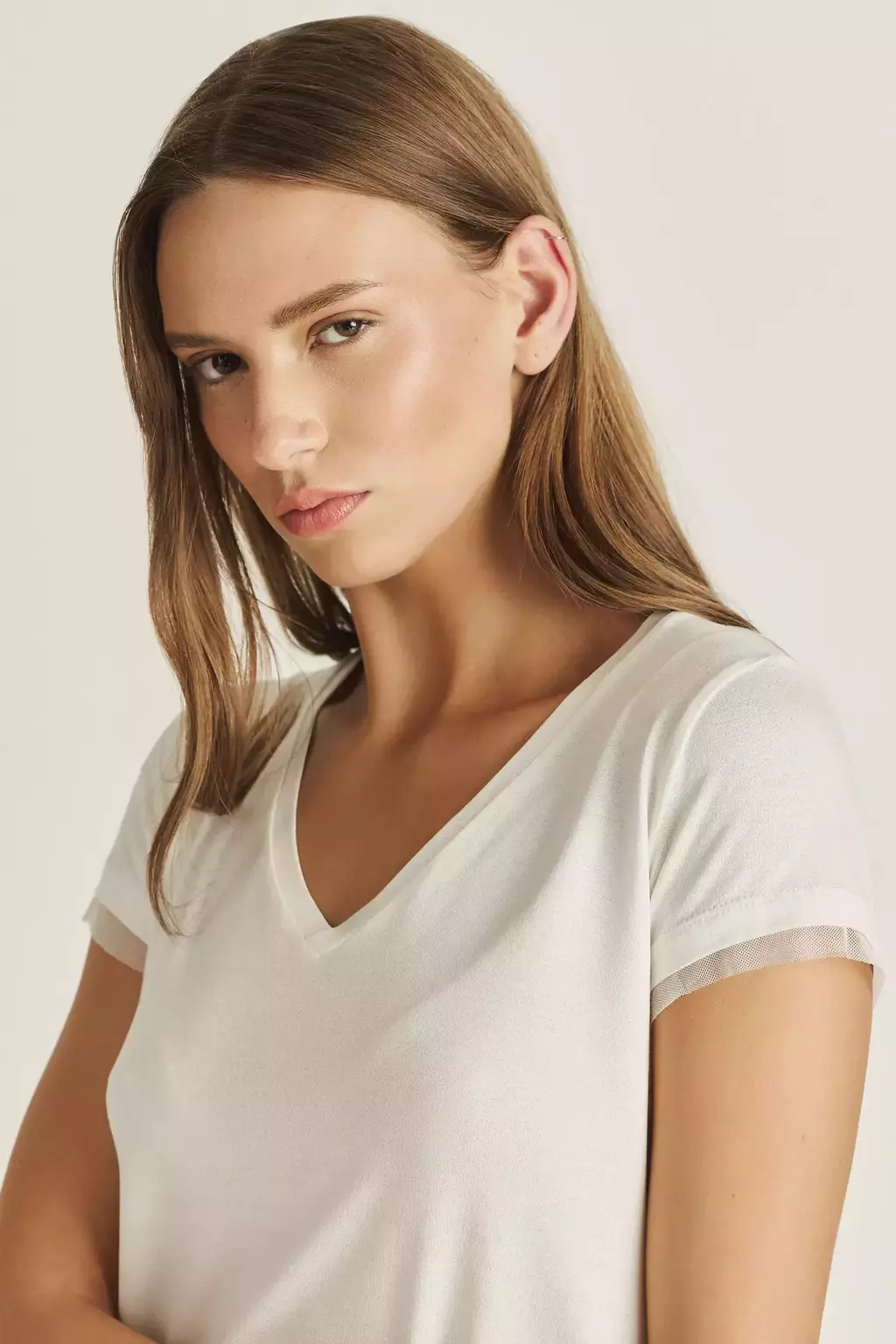 Remera confeccionada en género de punto. En la manga lleva terminación en género traslucido y además el logo de la marca en relieve a tono.