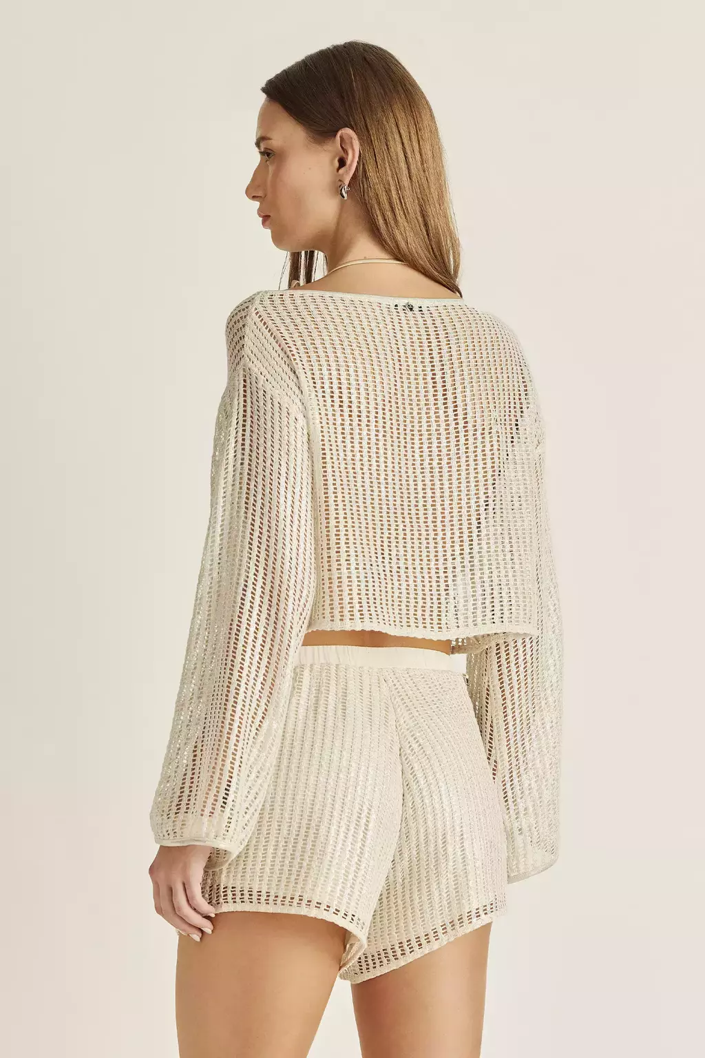 Remera confeccionada en red foil. Sus mangas amplias le dan movimiento y una silueta relajada. Combinála con el Top Osiris o el Top Iris. Completá tu total look con el Short Native para un conjunto fresco, audaz y muy Tucci. Una prenda para superponer, destacar y sentirte única.