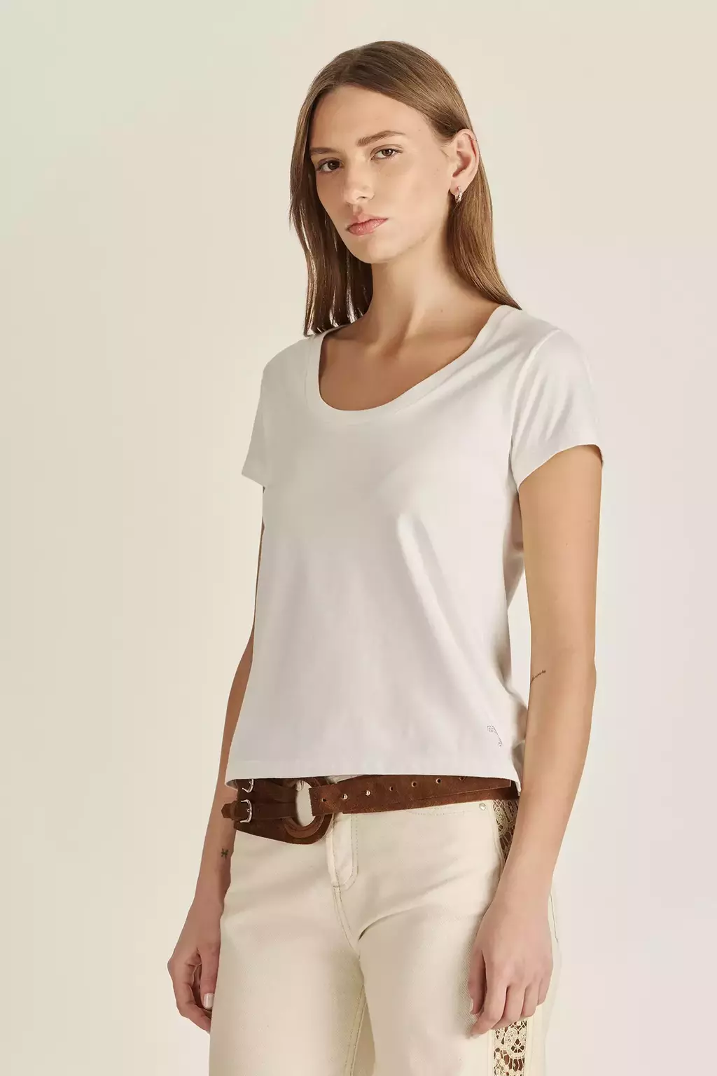 Remera confeccionada en tejido liviano de algodón con estampa en hot fix Tucci en el delantero. El calce es al cuerpo y el escote es pronunciado. En el escote trasero lleva un dije con el logo de la marca. Sin dudas el básico reversionado que tu vestidor necesita.